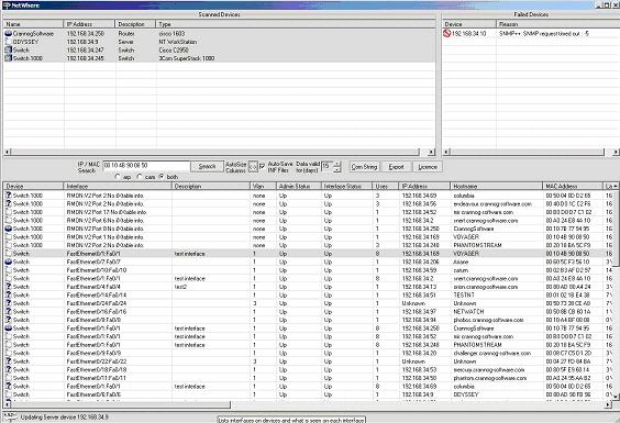 NetWhere™ 是*个实时的网络查看工具,它允许用户在任何时候确定从网络上连接到用户路由器/交换机的详细情况,使用SNMP,Netwhere能查询网络上任何允许SNMP操作的网络设备,并指示出这些网络设备上端口的详细连接情况,同样,Netwhere在发现每*个交换机时能够发现所有的接口以及与这些接口相关联的MAC地址,在发现路由器时,也能够发现每*个IP地址以及与之相关联的网络接口和MAC地址的详细情况。